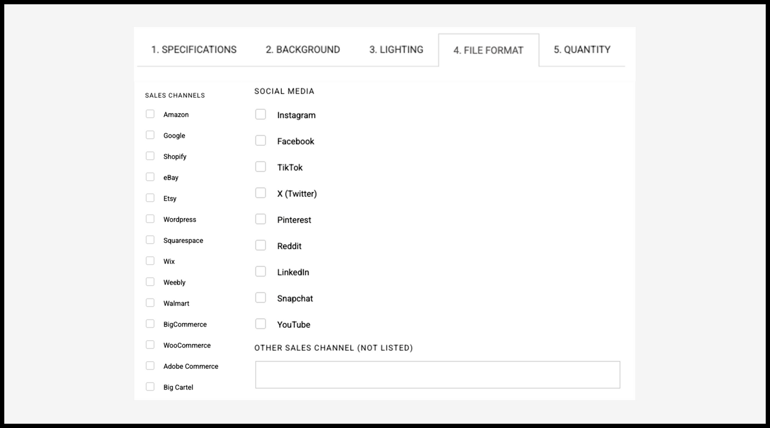 Let us know which Sales Platforms and Social Media sites you will be uploading the images to so we can send you the images in the appropirate format.